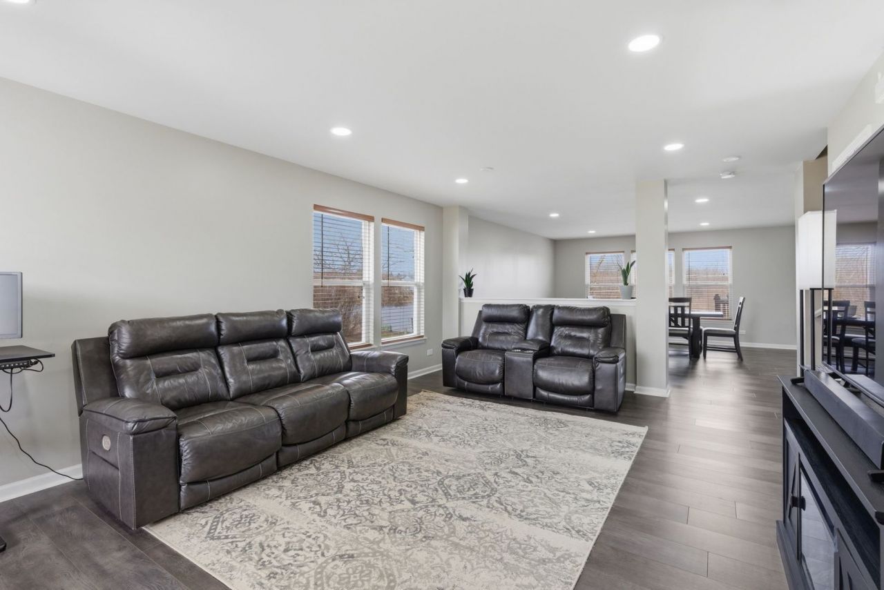Welcome to this expansive 4 bedroom residence perfectly positioned on a premium lot overlooking a serene pond and picturesque open green space, offering both privacy and breathtaking views. From the moment you enter, you'll appreciate the spacious layout and beautifully updated flooring that flows throughout the main living areas, adding warmth and modern elegance. The oversized primary suite serves as a private retreat, complete with a large walk in closet and a spa like ensuite bath featuring a separate shower. The kitchen is designed for both style and functionality, showcasing a large center island, breakfast bar, ample cabinetry, and sliding glass doors that seamlessly connect indoor and outdoor living. Step outside to your custom outdoor oasis featuring an impressive deck with a pergola covered grilling area, built in bench seating, counter space for entertaining, and an expansive brick paver patio perfect for hosting gatherings or enjoying peaceful evenings. Additional premium features include a spacious 3 car garage and a full English basement with endless potential for customization. Offering generous living spaces, thoughtful updates, and stunning natural surroundings, this home truly delivers comfort, elegance, and exceptional lifestyle appeal.