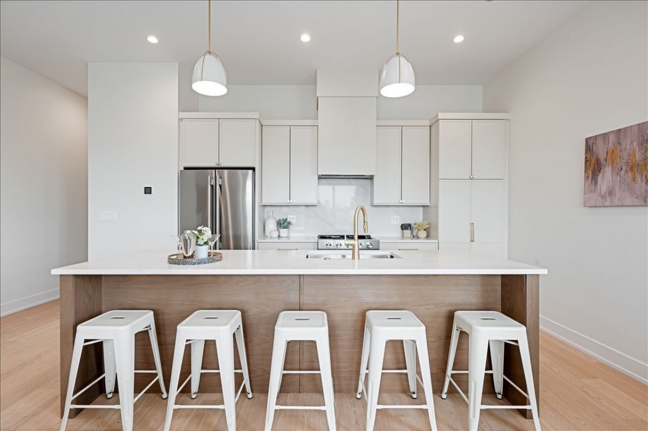 Stunning top floor new construction 2 bedroom, 2 bath + office residence in a boutique 9-unit elevator building located in Lincoln Square. This exceptional home offers a thoughtfully designed open floor plan anchored by a show-stopping custom kitchen featuring slim shaker cabinetry, a 9' oak island, a decorative hood cover, LED accent lighting, brass fixtures and stainless steel KitchenAid appliances. The expansive living and dining area boasts 10' ceilings and oversized windows that flood the space with natural light. The primary suite serves as a serene retreat, highlighted by radiant heated floors in the spa-inspired bathroom, a large walk-in shower, and double sink oak vanity. One additional bedroom, home office, and beautifully appointed full bath complete the interior. Designed to extend living outdoors, the home features a 5' x 21' private terrace directly off the living area as well as a 1000+ SF private roof deck, ideal for entertaining. One heated garage parking spot included. Photos of model unit with same floor plan. Deliveries beginning in May 2026.