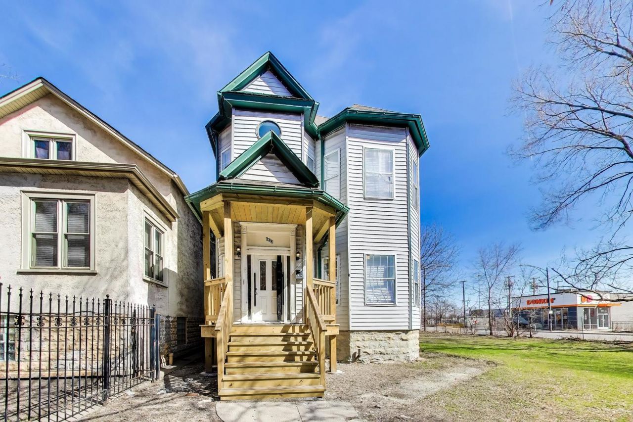 Large two flat on a massive triple corner lot! Long term tenants have vacated and units have been restored to move in condition. New kitchen cabinets and counter tops. New bathroom vanity. New paint. New carpet. The seller spent over $40,000 to completely replace the front and back porches in 2026. Units have hardwood floor throughout and tile in the kitchen/bathrooms. There is an additional bedroom and bathroom in the basement. Price includes two additional lots!!! Top floor is a 2 bedroom, 1 bathroom unit and the first floor is a 1 bedroom, 1 bath unit. Minutes from parks, schools and all the shopping and dining that the city has to offer. CTA Train Stop is ONE BLOCK away allowing quick transit downtown.