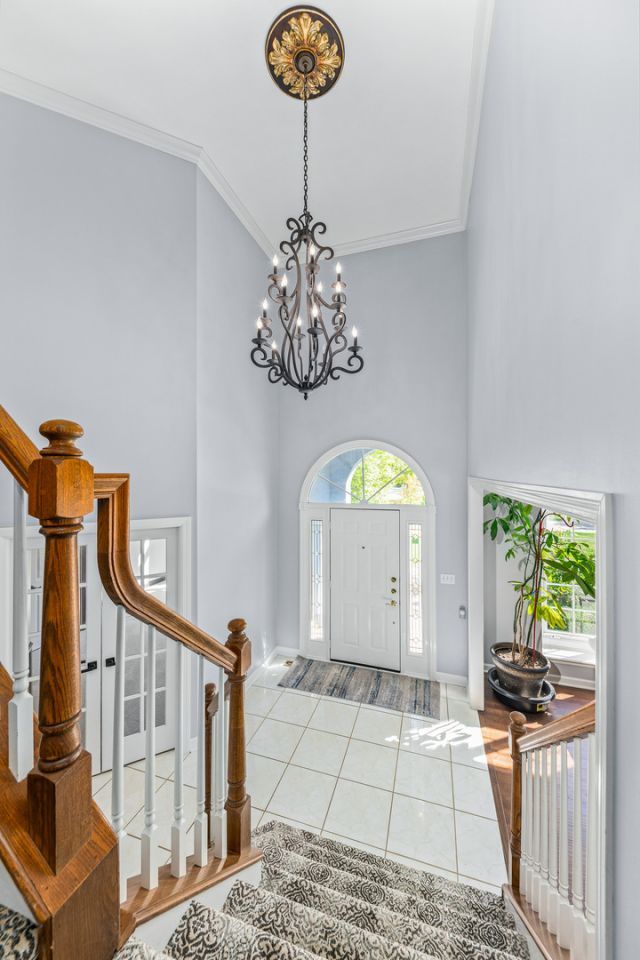 Nestled on a quiet cul-de-sac, backing up to a peaceful pond, step inside to a two-story entry filled with light. The main floor flows easily from a home office or first floor bedroom, light filled dining room, to a freshly reconditioned kitchen with recently professionally painted cabinets, quartz countertops, and updated modern lighting. The adjoining family room and sunroom were both given new hardwood floors, creating a warm backdrop for gatherings around the double-sided fireplace. Upstairs, brand-new carpet carries through every bedroom, hallway, and staircase. The primary suite feels like a private retreat, complete with its own fireplace, spa bath with jacuzzi, and walk-in closet. All upstairs bathrooms feature new toilets for a fresh touch. Outside, the home shines with a freshly painted deck and siding, reconditioned pavers, and a lovely landscaped garden that frames the property beautifully. Enjoy peaceful pond views with no neighbors behind - a rare Stonebridge find. Other details make this home truly move-in ready: updated light fixtures and ceiling fans throughout, a freshly painted interior, energy-efficient laundry by the garage, and well-maintained furnace and condenser units. A three-car garage provides plenty of space, while the unfinished basement is a blank canvas for whatever comes next! Welcome to Stonebridge!